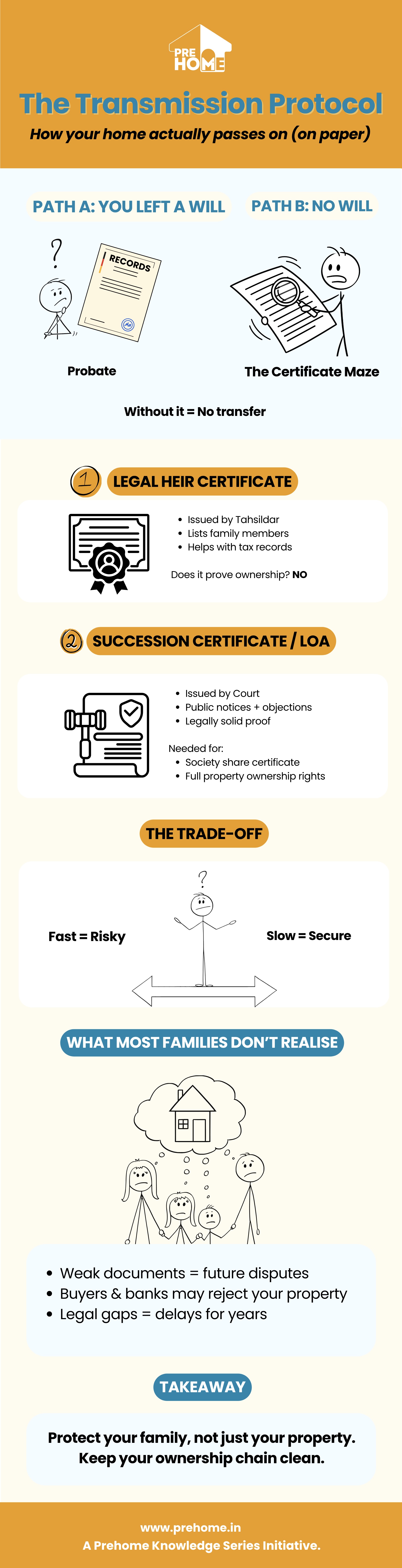 • The Reality : While obtaining court documents takes 6–12 months, they are solid proof. The Tahsildar's Legal Heir Certificate leaves the door open for future disputes.